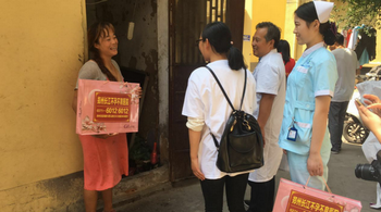 活动现场门庭若市,我们的志愿者也将带来的小礼品——扇子发送到每个居民手中,希望能在炎炎夏日,为他们带来一丝凉爽。