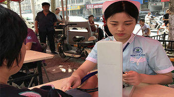 随着生活方式的改变和人口老龄化,我国高血压患病率呈逐年增长的态势,经常测量血压,可提高高血压知晓率以及对心脑血管疾病的预测能力。美女护士为一位阿姨量血压,还细心叮嘱阿姨注意饮食,保持好心态。都说护士是白衣天使,果不其然。
