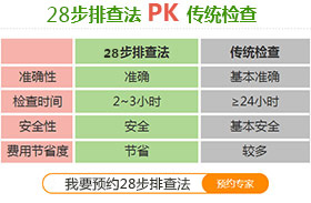 28关不孕不育排查法针对个人情况灵活选择男女各14项检查中的不同项目,检测全面系统、灵活对症。28关排查法根据男女同查同治的要求,分项目对症检测,所以可迅速查出不孕不育的病因,有利于医生快速选择科学治疗方案,极大地缩短了不孕不育的诊疗时间。该技术检测准确率高,已为成千上万因病因不明而久治不愈的不孕不育患者送去了孩子的笑声,挽救了无数濒临破碎的家庭。在线了解自己该做的检查项目