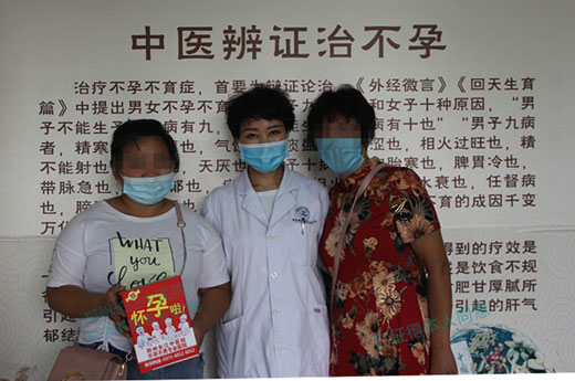 婆婆急的四处打听,在2019年12月份经人介绍找到郑州长江中医院王静院长,经检查是输卵管性不孕合并排卵障碍,宫腹腔镜联合手术后调理成功怀孕,旁边的婆婆知道媳妇怀孕后,那笑得停不下来,今天特地穿了一身的大红色喜庆的衣服来看望王静院长。