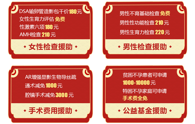 治疗不孕不育是规范、科学、严谨的系统性工程,专业的检查才能明确病因,针对治疗,为帮助减轻不孕患者的经济负担,让更多不孕不育家庭能看病、看好病,会诊期间,好孕河南不孕不育公益援助活动提供百万基金援助,让更多家庭实现生儿育女的梦想,特推出以下多项援助: